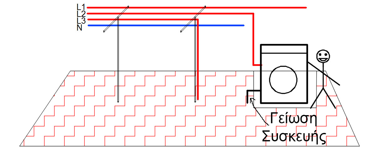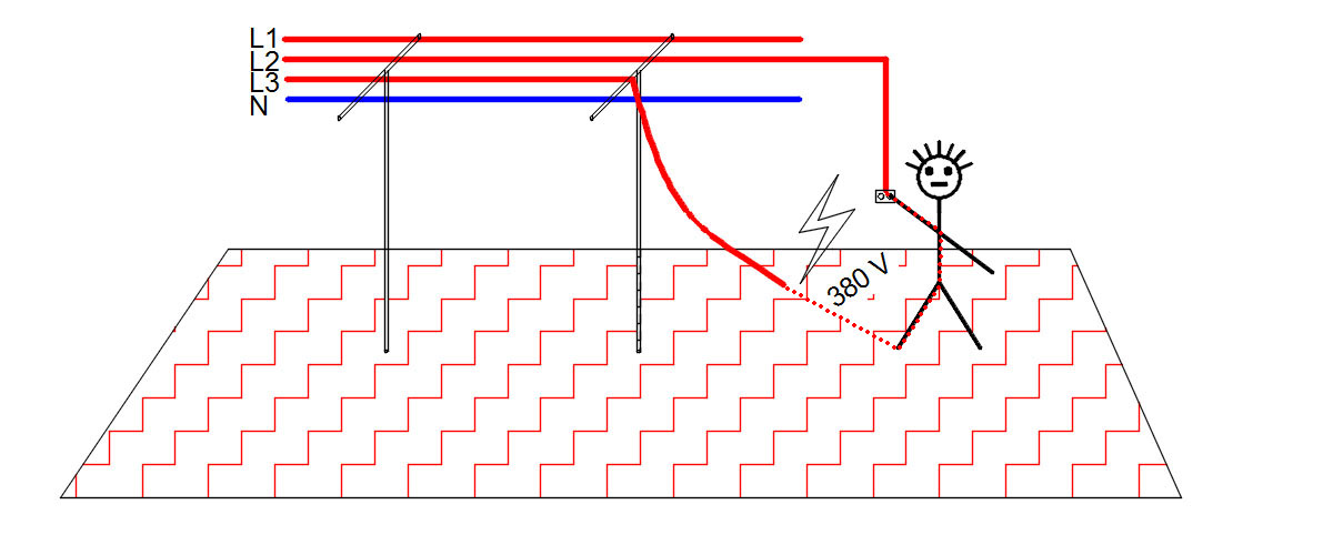 Ως γνωστό η πολική τάση του τριφασικού ρεύματος δηλαδή η τάση μεταξύ 2 φάσεων είναι 380 Volt. Εάν όλοι οι αγωγοί είναι απομονωμένοι από το έδαφος τότε αν κατά ακουμπήσουμε μια φάση, δεν θα πάθουμε ηλεκτροπληξία καθώς δεν υπάρχει διαφορά δυναμικού μεταξύ του αγωγού και της γης.