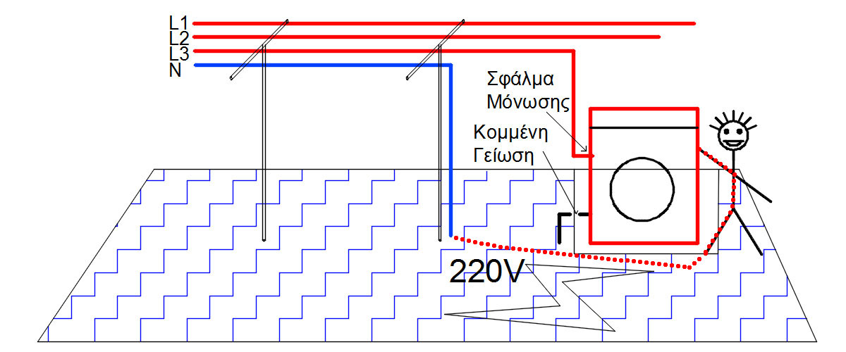 διότι θα υπάρξει βραχυκύκλωμα μέσω της γης, το οποίο θα ενεργοποιήσει τις ανάλογες διατάξεις ασφαλείας.