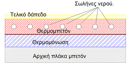 Η διαμόρφωση του δαπέδου στην ενδοδαπέδια φαίνεται στο παρακάτω σχήμα.