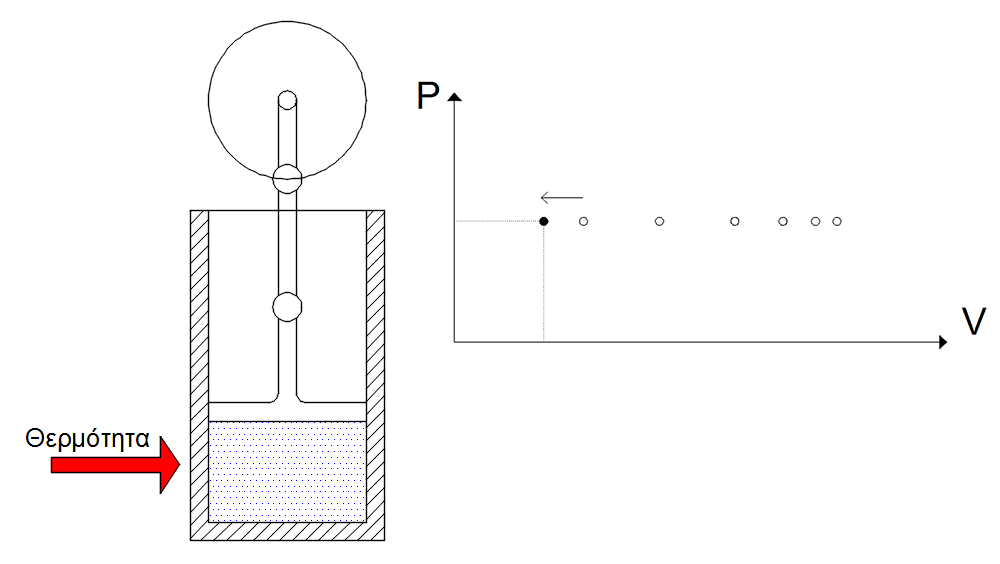 Αυτό οδηγεί στην μετακίνηση του κινητού τοιχώματος του δοχείου. Η θερμική ενέργεια μόλις μετατράπηκε σε κινητική.